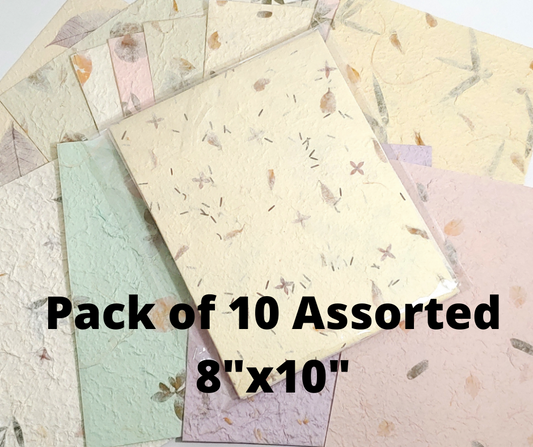 10 x Assorted Sheets of Mulberry Handmade Paper 8" x 10"